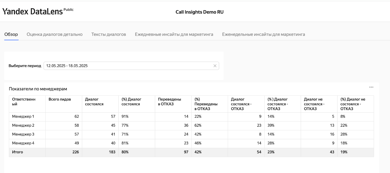 Мы разработали универсальный инструмент под названием Call Insights. Это искусственный интеллект в роли руководителя отдела продаж. Создан для того, чтобы управлять работой команды консультантов и делать её максимально действенной.