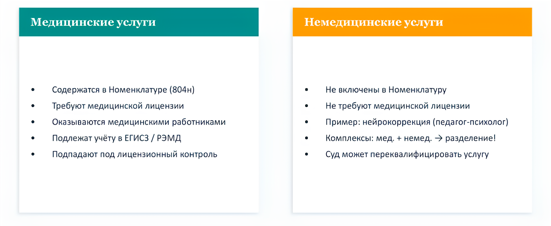 - Если нет — почему? Может быть, это немедицинская услуга, которую пора выносить в отдельный раздел?