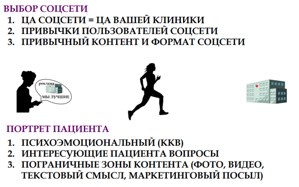 Что должно учитываться при создании контента? Прежде всего — его помощь пациенту. Контент — это не просто красивые картинки или тексты, а информация, которая решает проблемы вашей аудитории. Она может касаться симптоматики заболеваний, методов профилактики, описания медицинских услуг, представления врачей, актуальных цен. Пациенты ищут решения, и если ваш контент даёт им понятные и чёткие ответы, это вызывает доверие. Но здесь важно избегать двух крайностей: излишней научности и упрощения до потери смысла. Тексты не должны быть перегружены медицинской терминологией, но и не должны выглядеть как поверхностные заметки. Всё зависит от социальной сети: где-то можно давать более сложные материалы (например, в Яндекс.Дзене), а где-то (например, во ВКонтакте) лучше использовать простой и доступный язык.